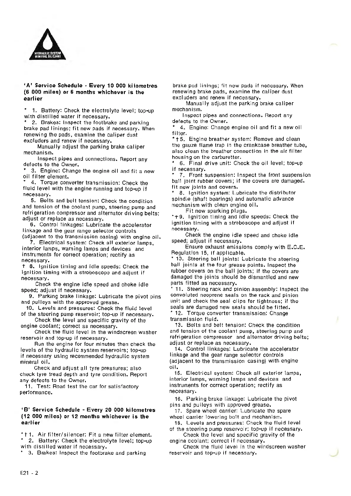 Service Schedule - Every 10 000 kilometres