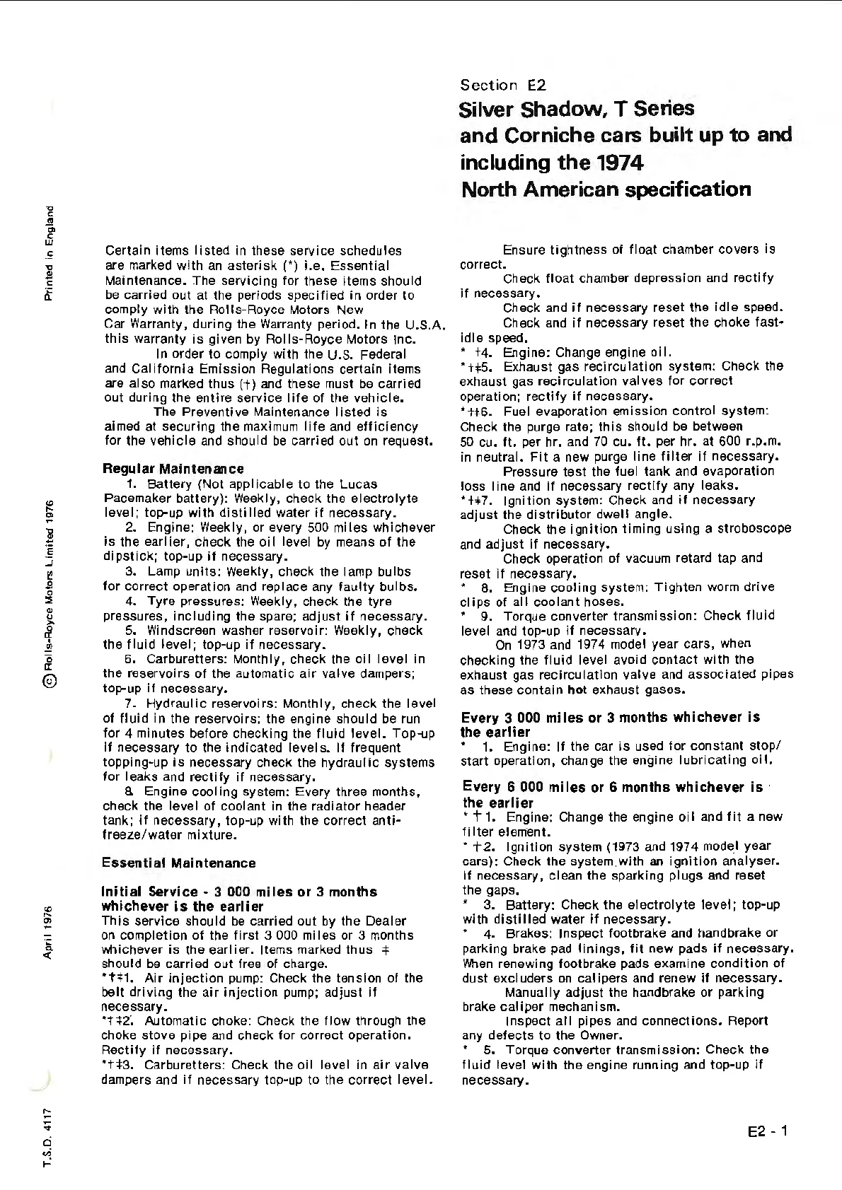 6. Carburetters: Monthly, check the