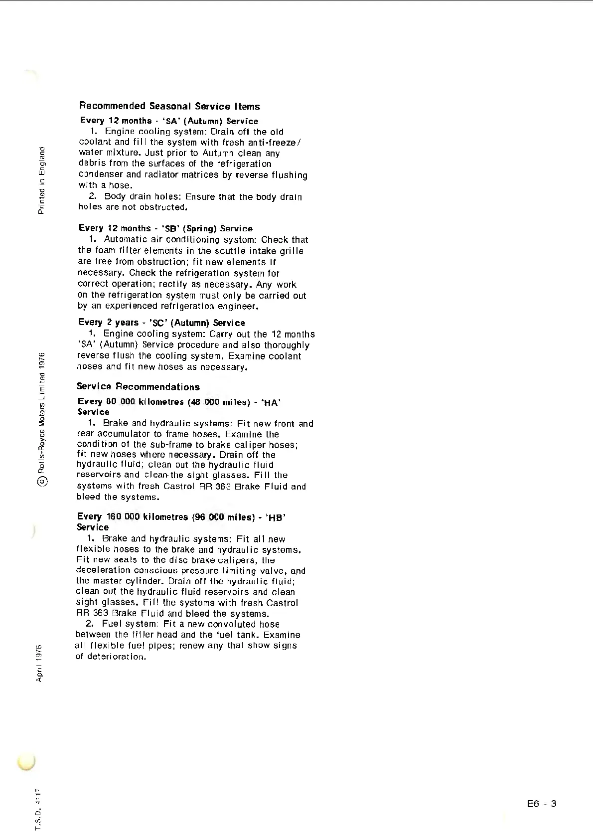 'SA' (Autumn} Service procedure and