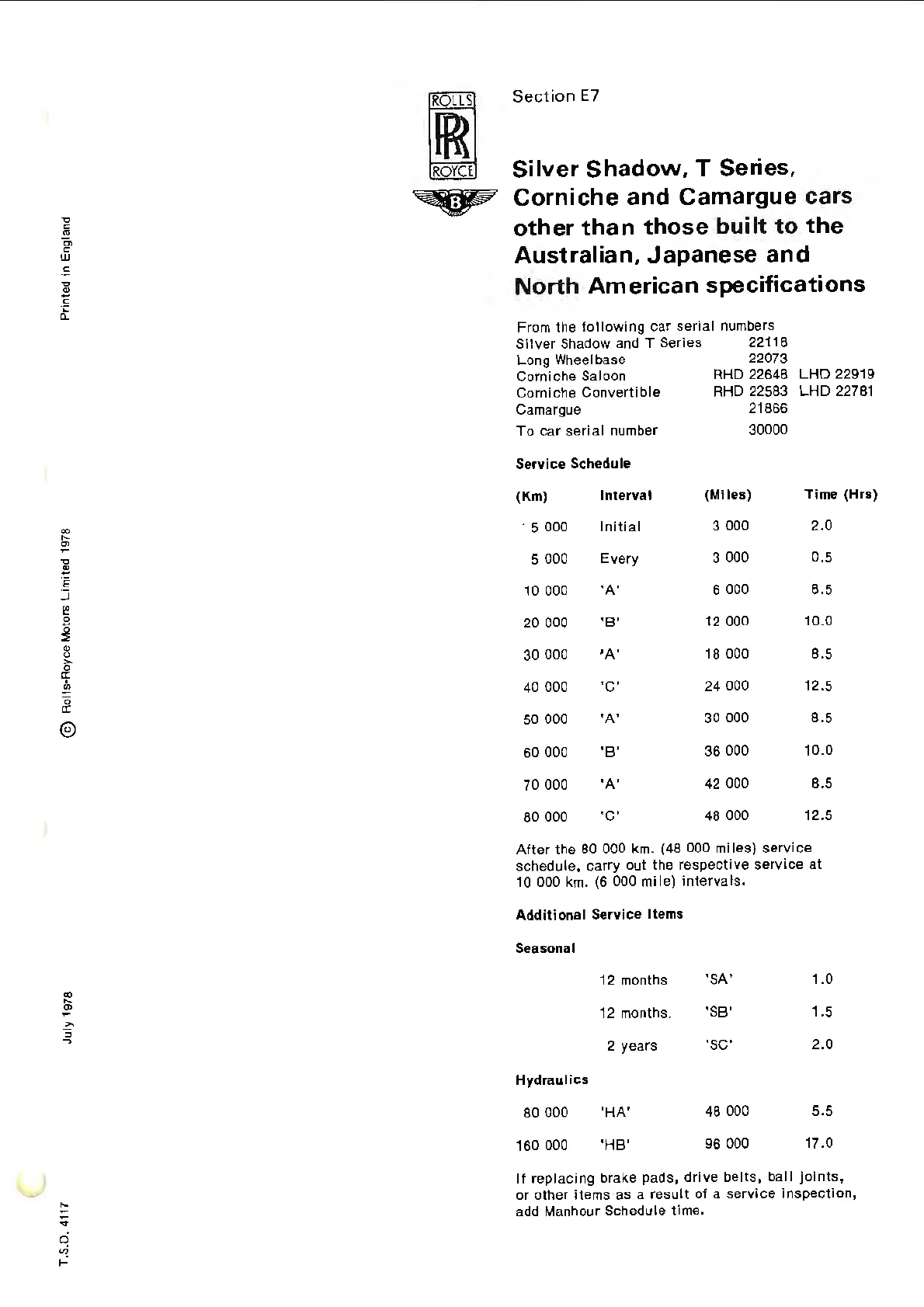 To car serial number 30000