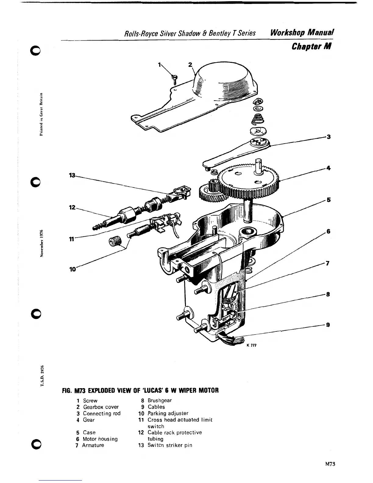 Rolls-Royce Silver Shadow - Exploded View of Lucas 6 W Wiper Motor