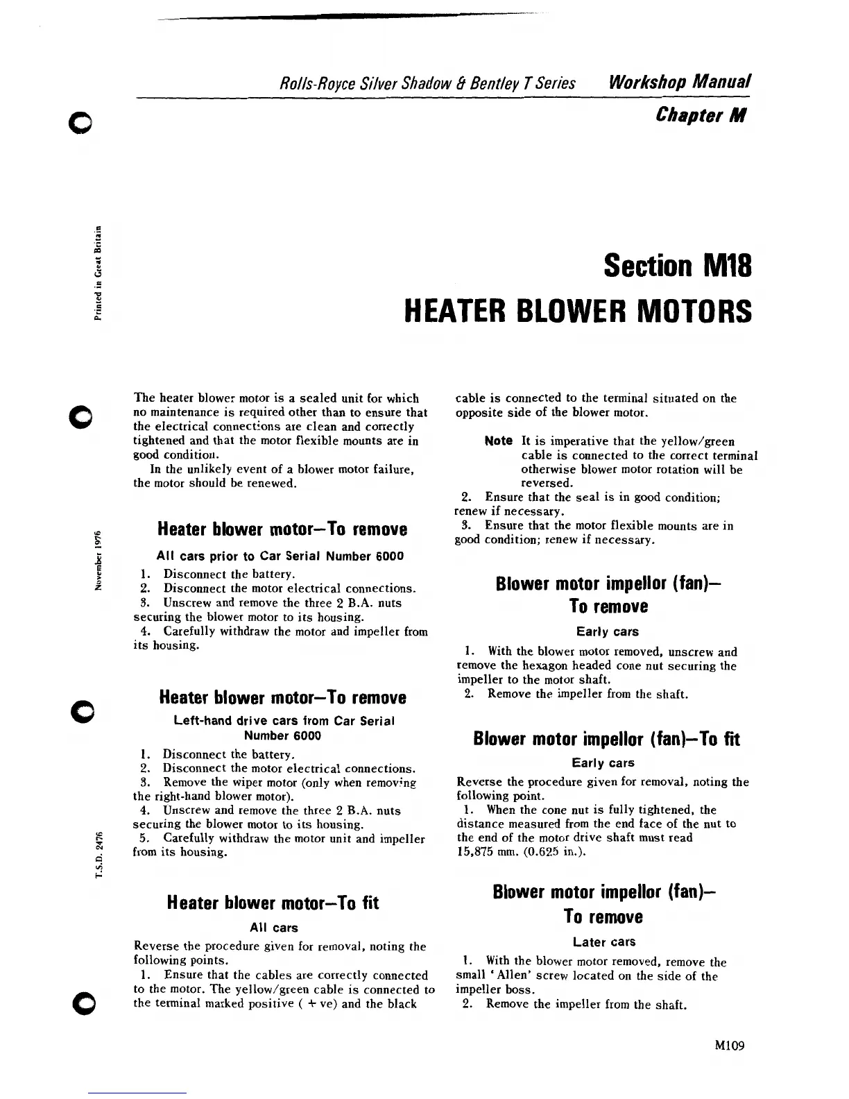 The heater blower motor is a sealed unit for which