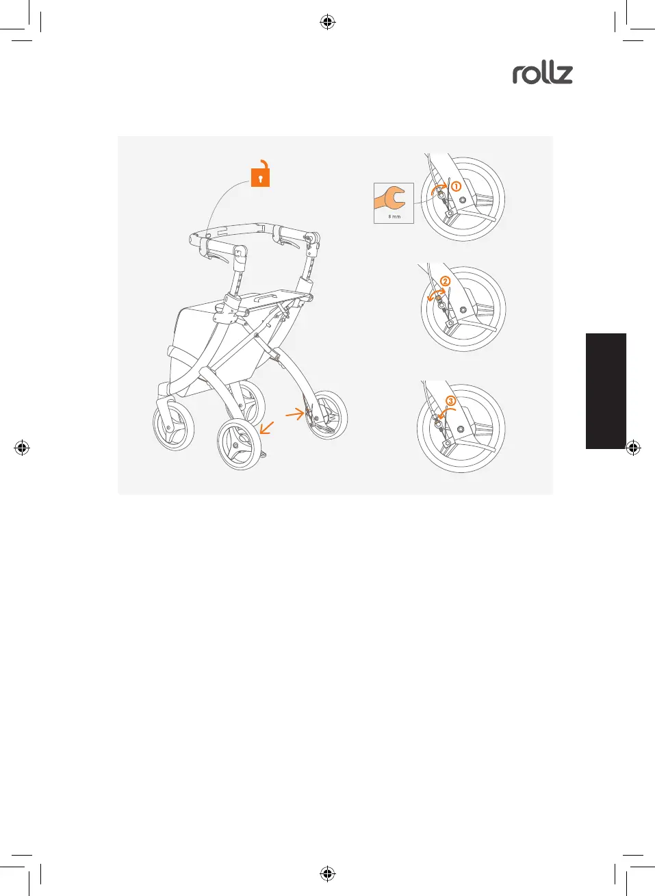 rollatorstand staat. Hiermee kunt u tijdens het lopen makkelijk remmen, ook als u