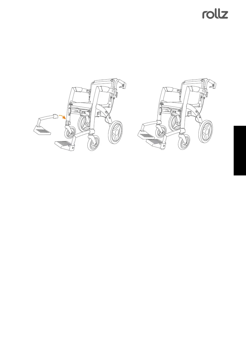 of the Rollz Motion, into the footrest holders on the frame. Slide them down