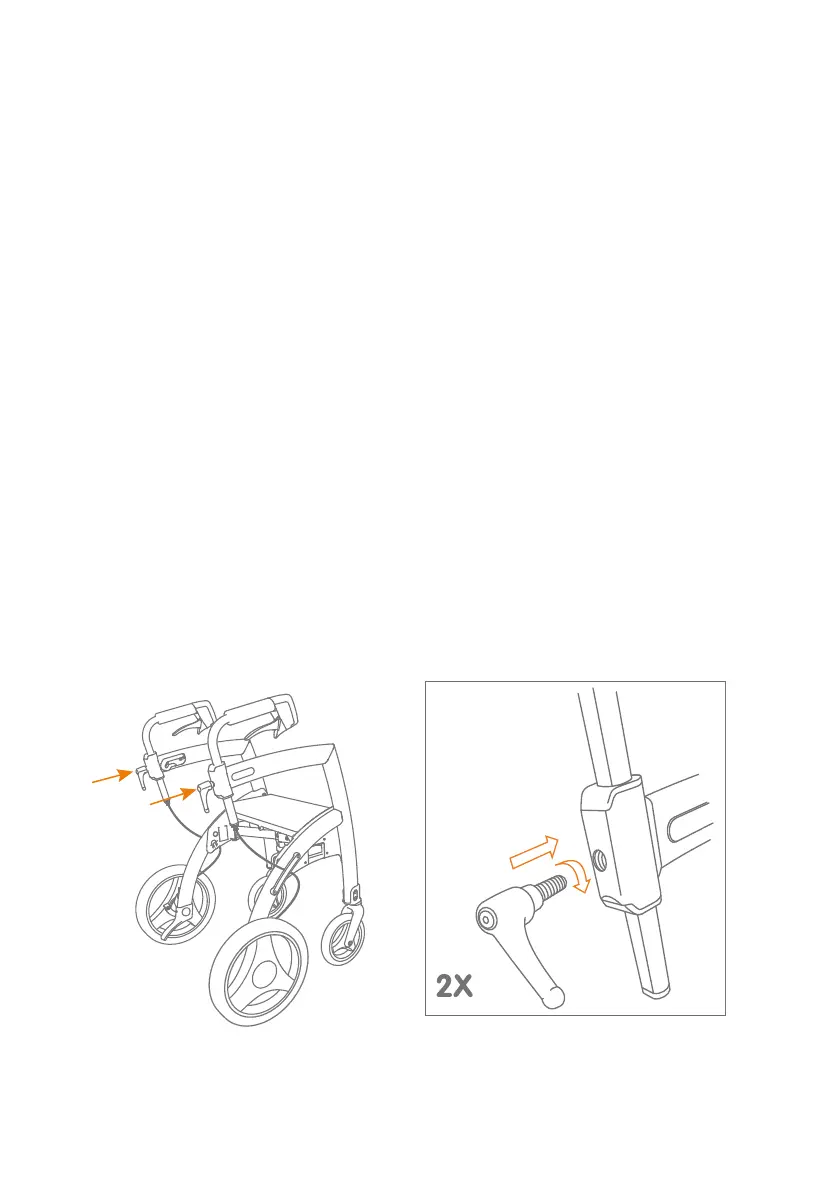 Before you can use the rollator, the two adjustment handles must be screwed in.