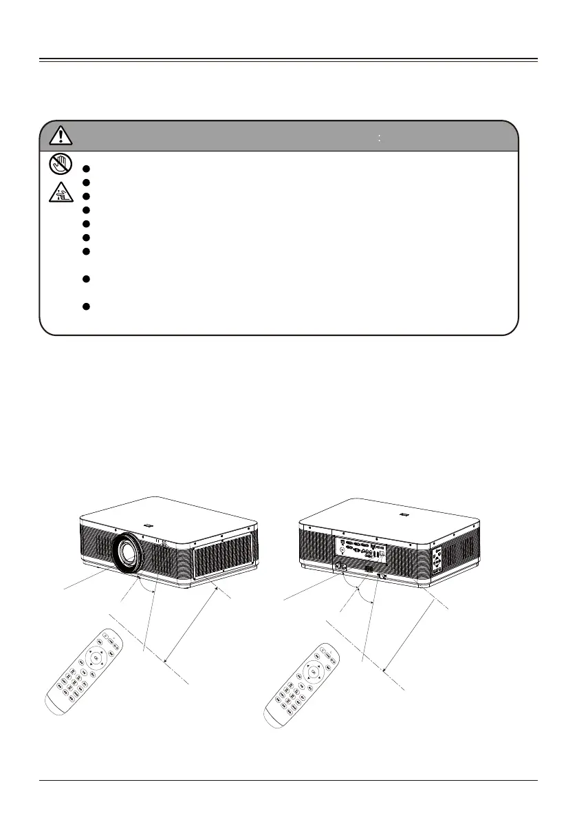 —The maximum operating range of the remote control is 7 meters in linear