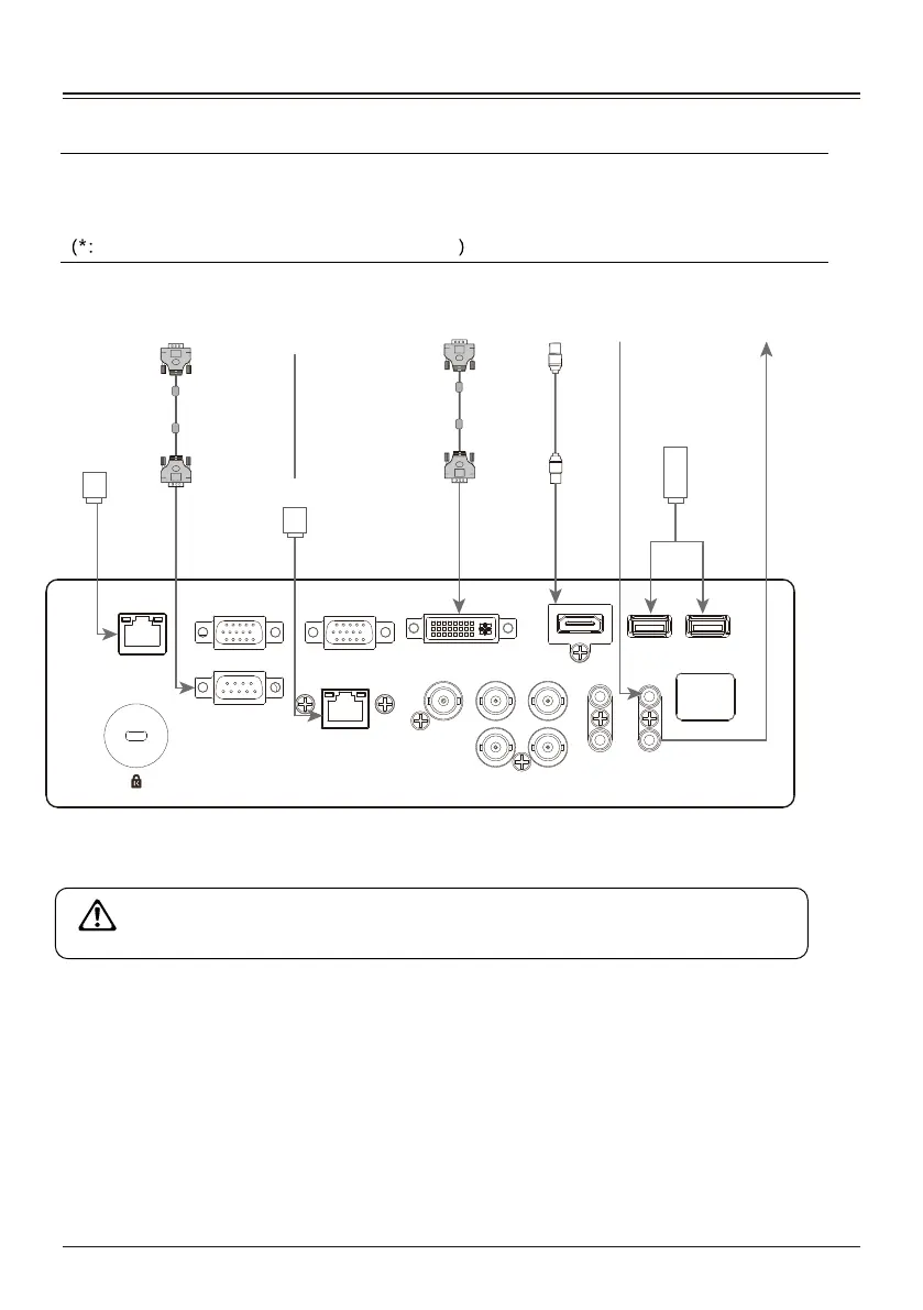 When connecting the cable, unplug the power cord of the projector and
