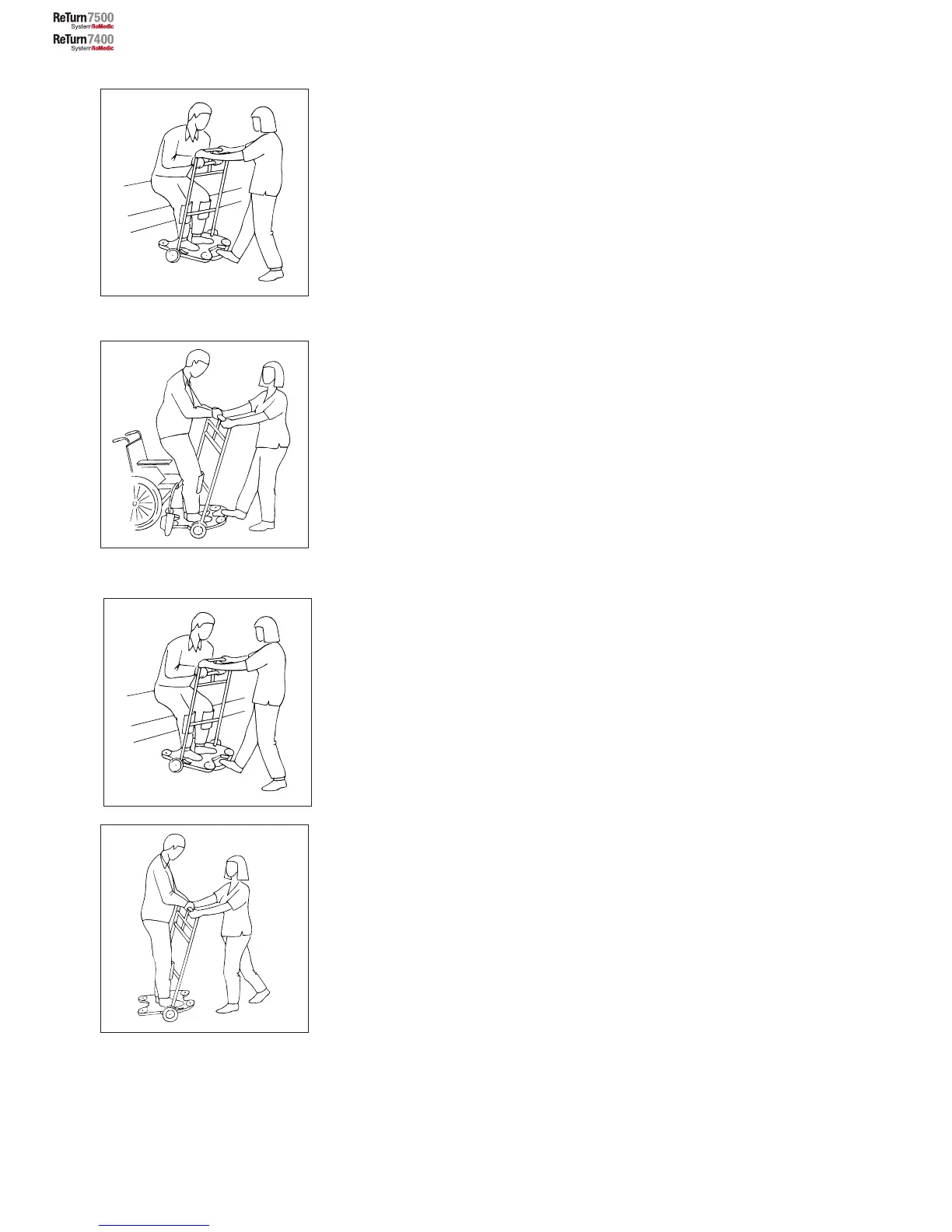 Lock the wheelchair wheels. Place the patient’s feet on the base plate. The patient
