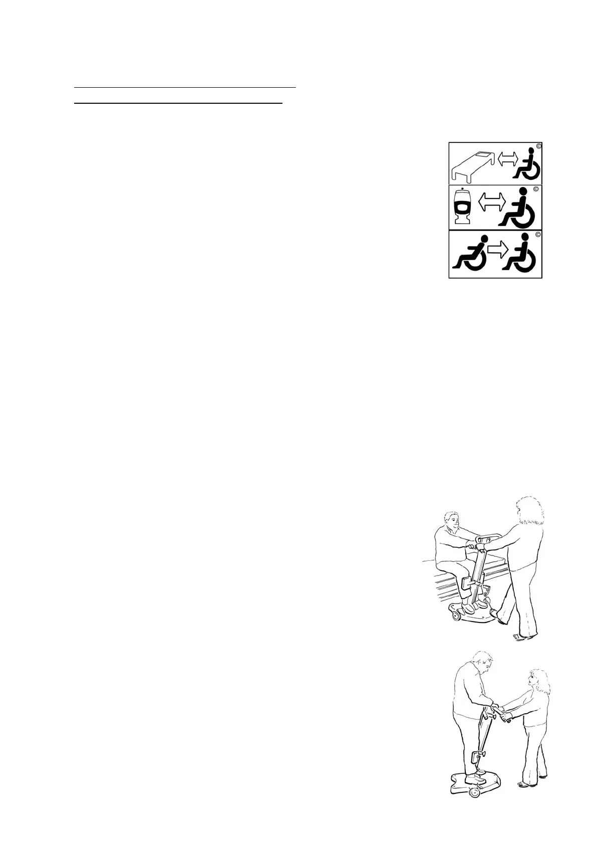 • The carer must always counter-balance the user’s weight when