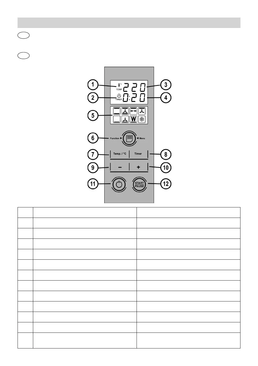 9 Sensortaste zur Reduzierung von Temperatur/Zeit touch key for reducing temperature/time