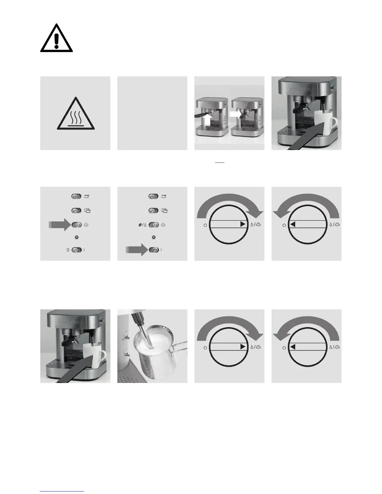 • Achtung: Zum Schwenken der Heißwasser-/Dampfdüse fassen Sie diese nur am oberen