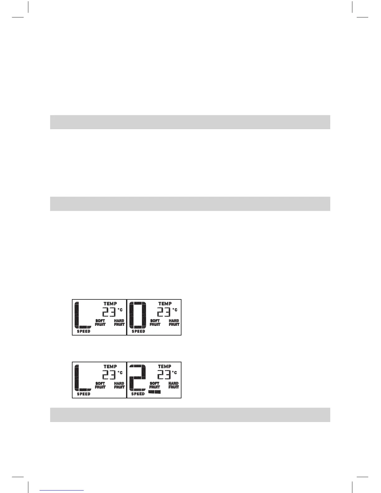 blinking “L”. As soon as the clamp gets relocked the appliance will restart at the set speed level.