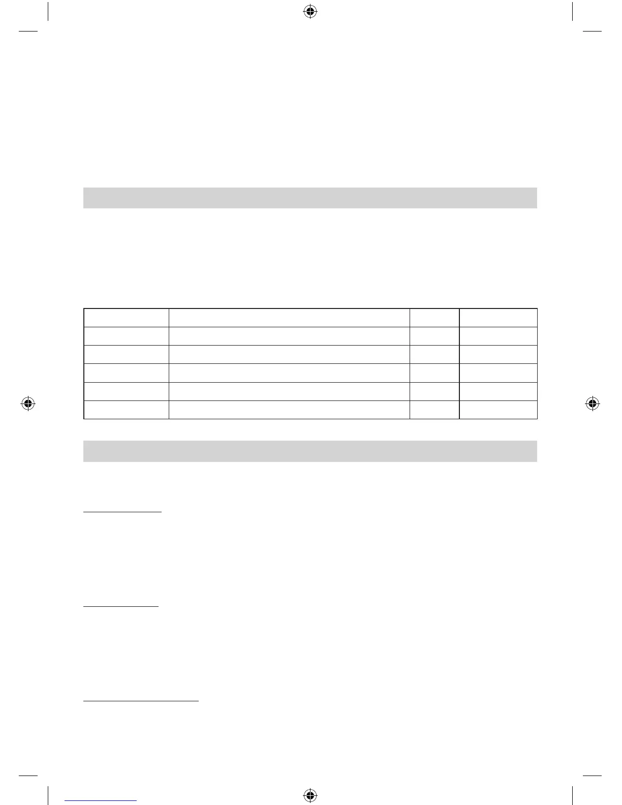 • Die Werte in der nachfolgenden Tabelle sind Richtwerte und im Wesentlichen abhängig von der Frische