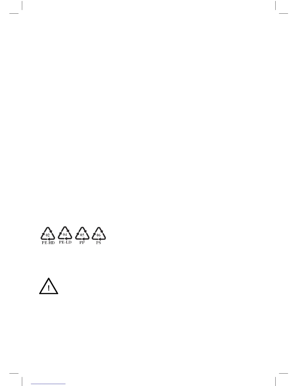 02 for PE-HD, 04 for PE-LD, PP for polypropylene, PS for polystyrene.