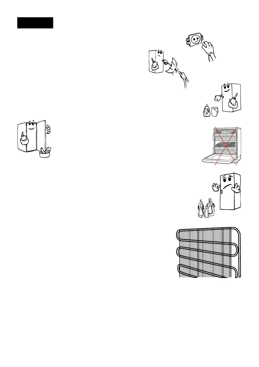 • The refrigerator compartment should be cleaned periodically