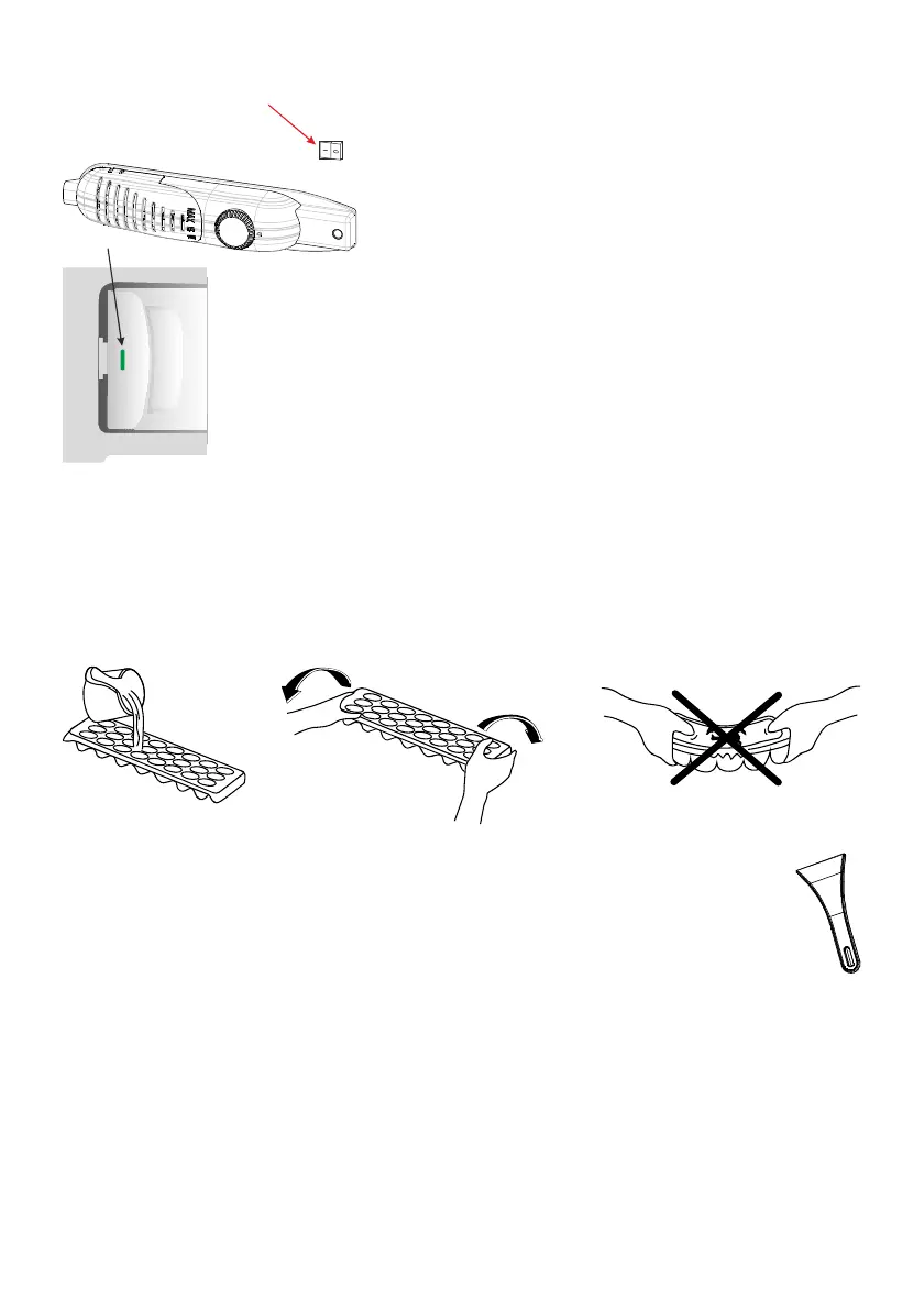 • Keď sa voda zmení na ľad, môžete misku otočiť tak, ako je znázornené nižšie,