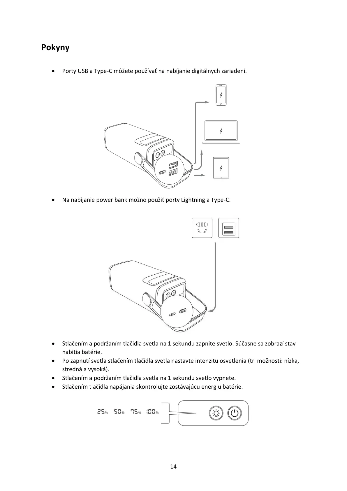 • Na nabíjanie power bank možno použiť porty Lightning a Type-C.