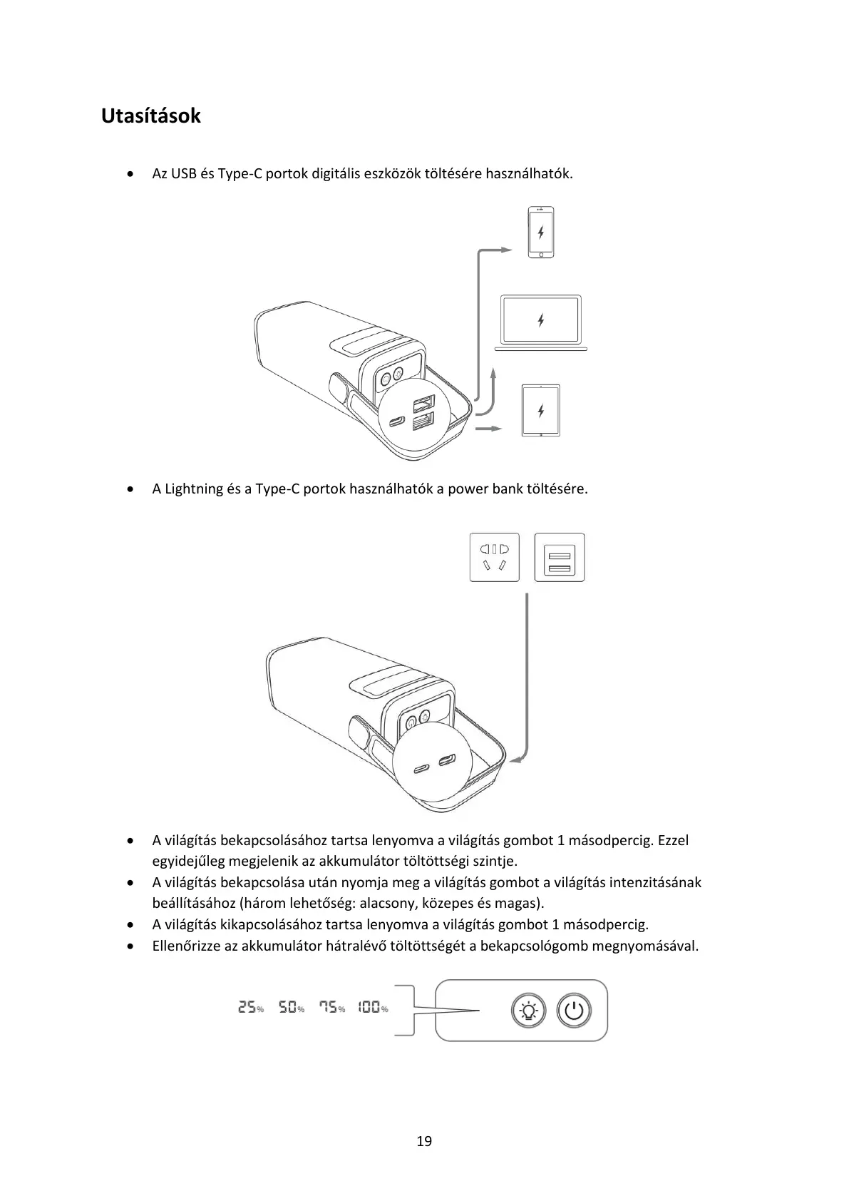• A Lightning és a Type-C portok használhatók a power bank töltésére.