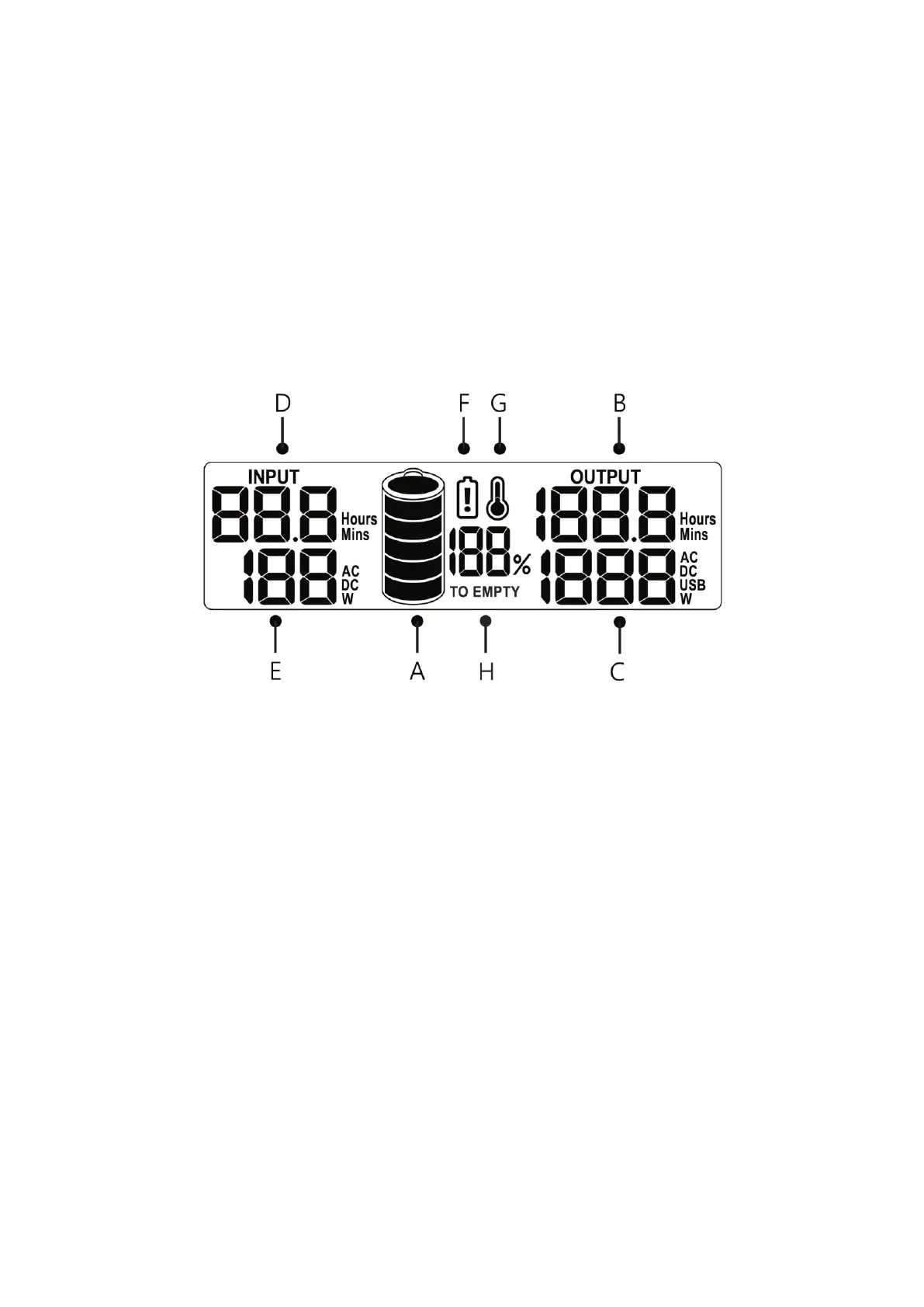 F. Výstraha pred nízkym napätím: Keď sa objaví toto upozornenie, nabite napájací