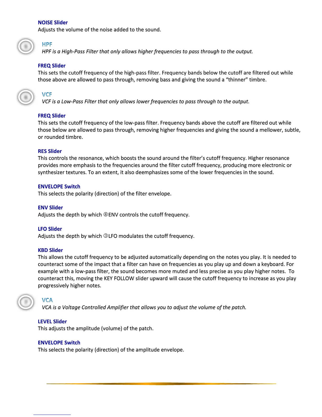 synthesizer textures. To an extent, it also deemphasizes some of the lower frequencies in the sound.