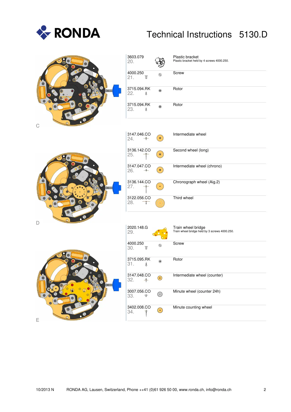 10/2013 N RONDA AG, Lausen, Switzerland, Phone ++41 (0)61 926 50 00, www.ronda.ch, info@ronda.ch 2