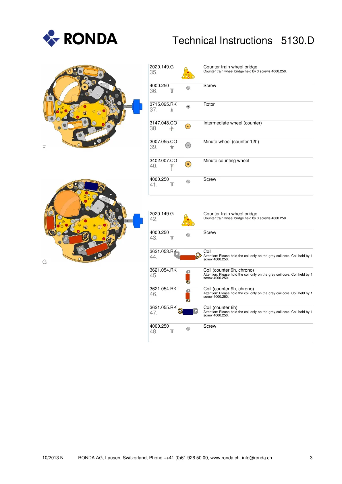 10/2013 N RONDA AG, Lausen, Switzerland, Phone ++41 (0)61 926 50 00, www.ronda.ch, info@ronda.ch 3