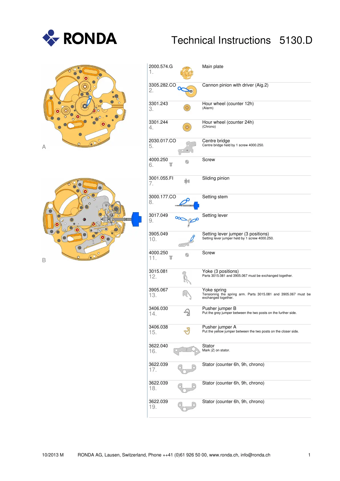 10/2013 M RONDA AG, Lausen, Switzerland, Phone ++41 (0)61 926 50 00, www.ronda.ch, info@ronda.ch 1