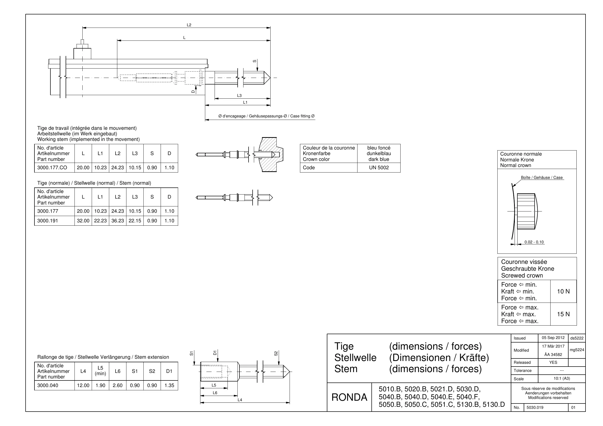 Tige (normale) / Stellwelle (normal) / Stem (normal)