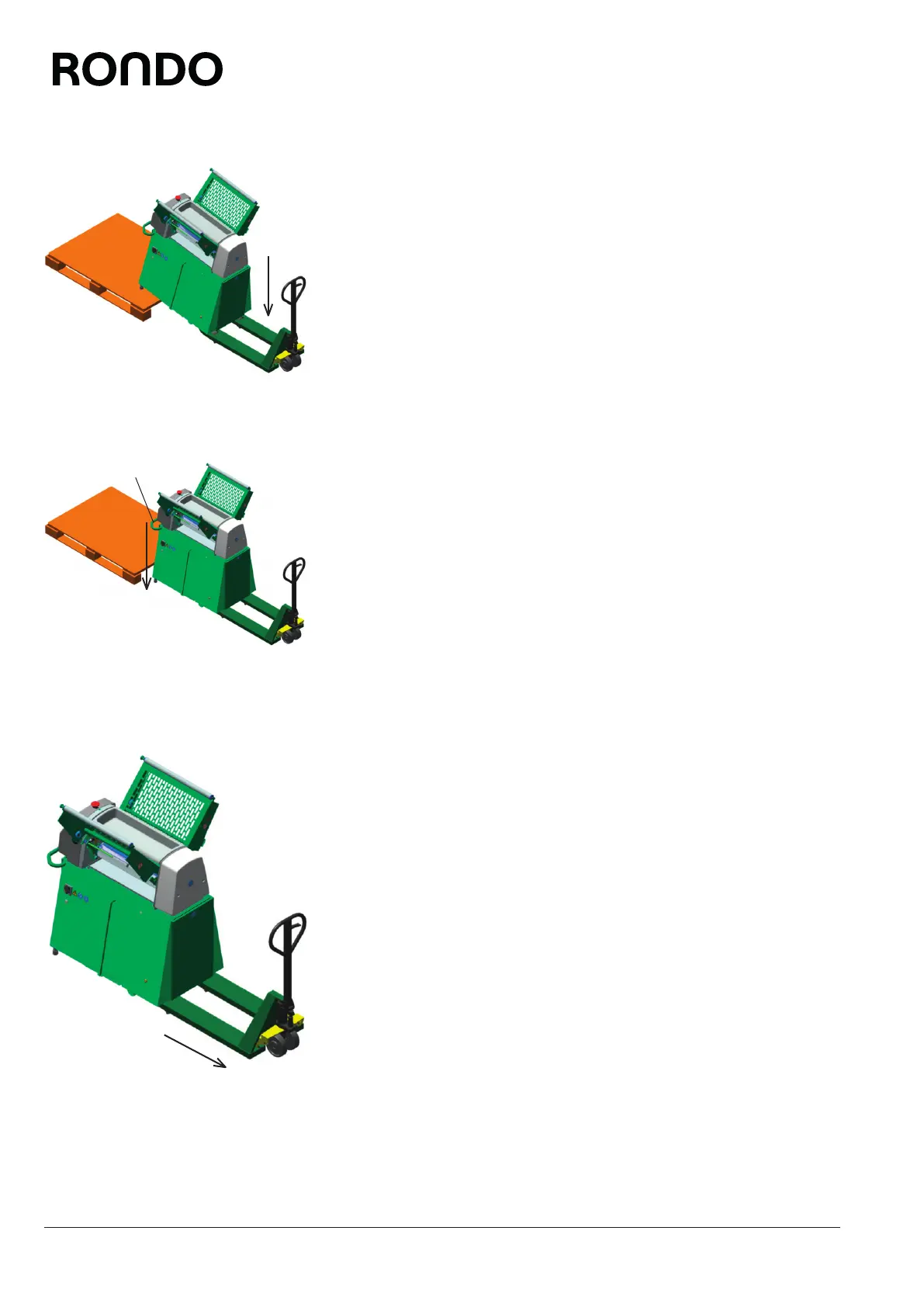 12. Lower the fork of the manual pallet jack.