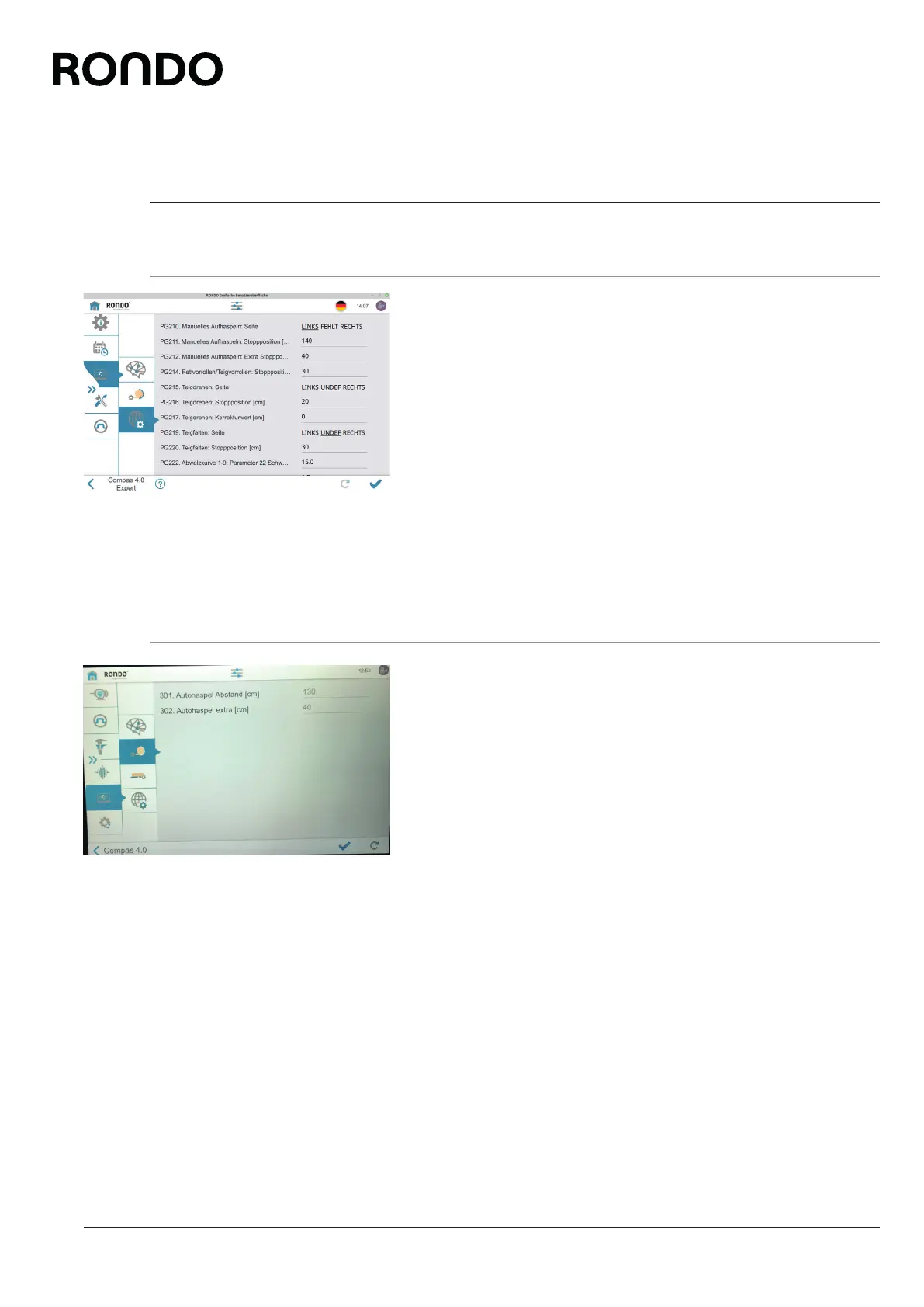 5.6.1 Set parameters: Dough processing [foreman or higher]
