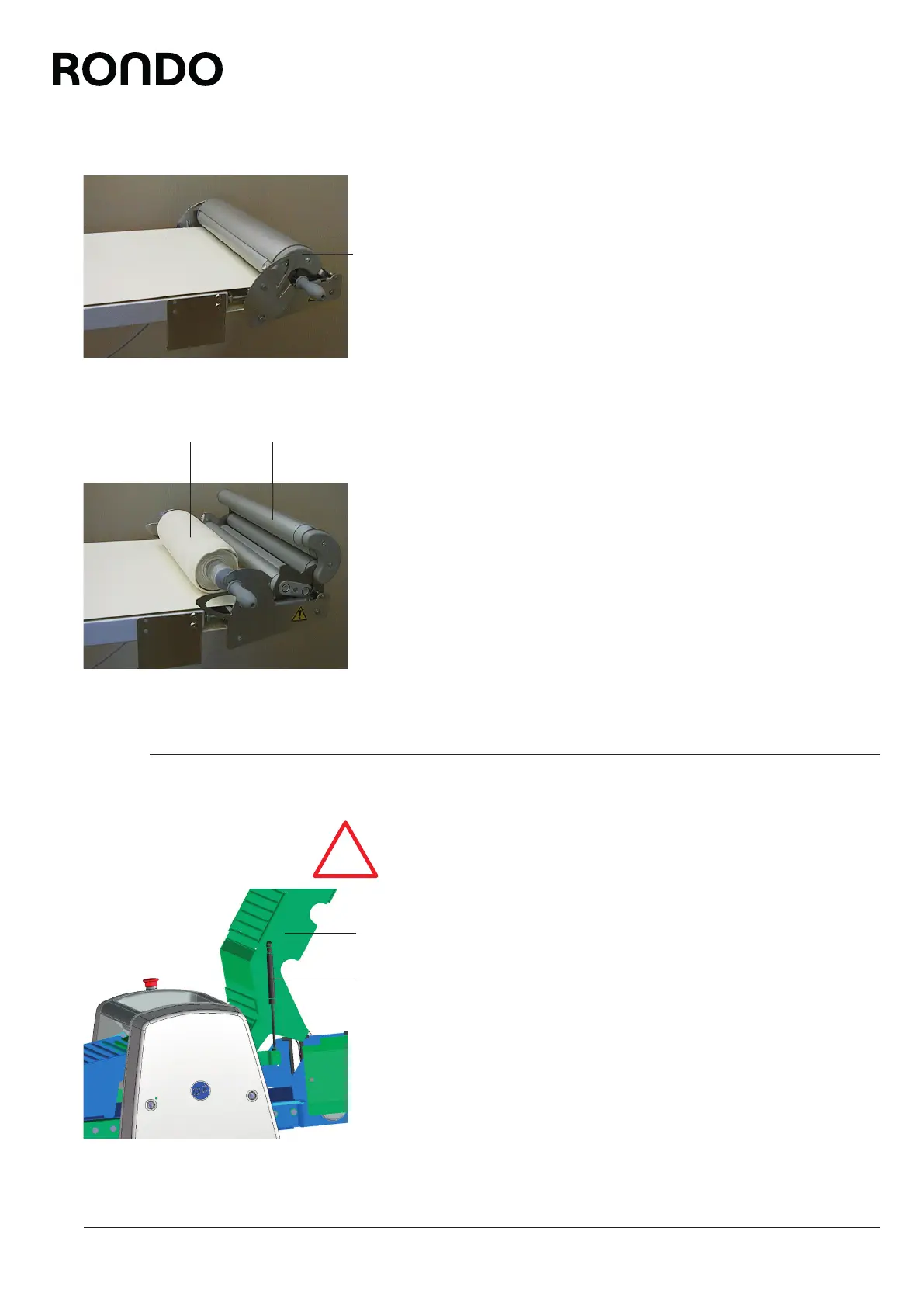 The dough band is reeled up, and the upper rollers (7) swing up.