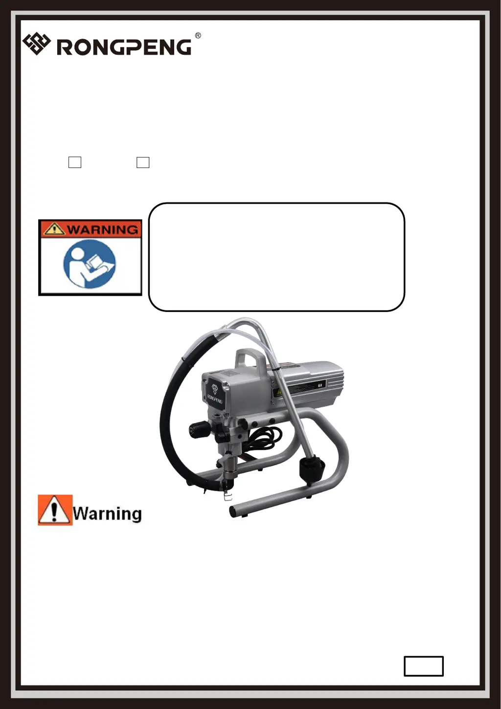 If the motor of your Rongpeng Paint Sprayer won't operate, there are several potential causes. You can slowly increase the pressure setting to see if the motor starts. It could be due to a clogged spray tip or fluid filter, in which case you should relieve pressure and clear the clog or clean the gun filter. Another possibility is a frozen pump or hardened paint; thaw the sprayer completely in a warm area before starting it, and if paint has hardened, replace the pump packings. Check the displacement pump connecting rod pin and push it into place, securing it with the spring retainer. If the fan still won’t turn, the motor may need to be replaced.