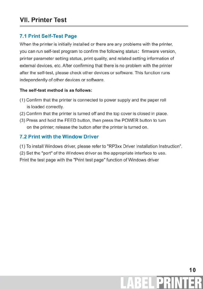 Rongta Technology RP310 - Printer Test; Print Self-Test Page; Print with the Window Driver