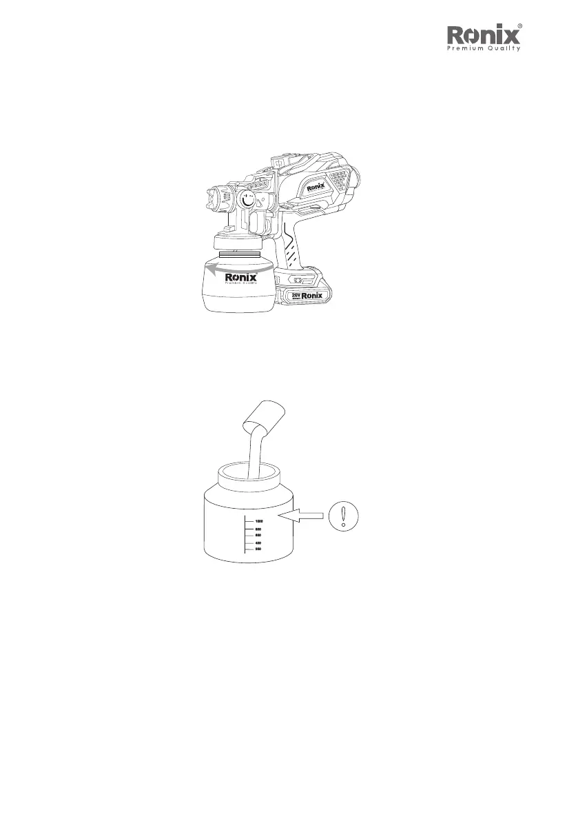 - Pour thinned paint into the tank, do not exceed the MAX. scale