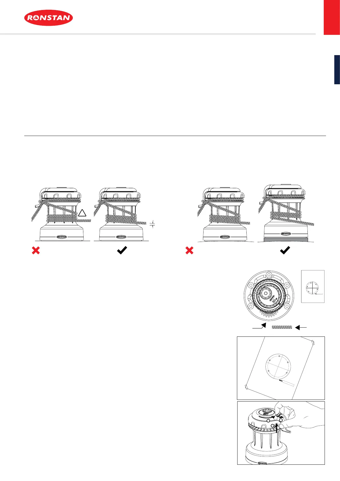 The winch should be positioned with the recommended line entry angle of 3-8° from horizontal. Refer to the diagrams below: