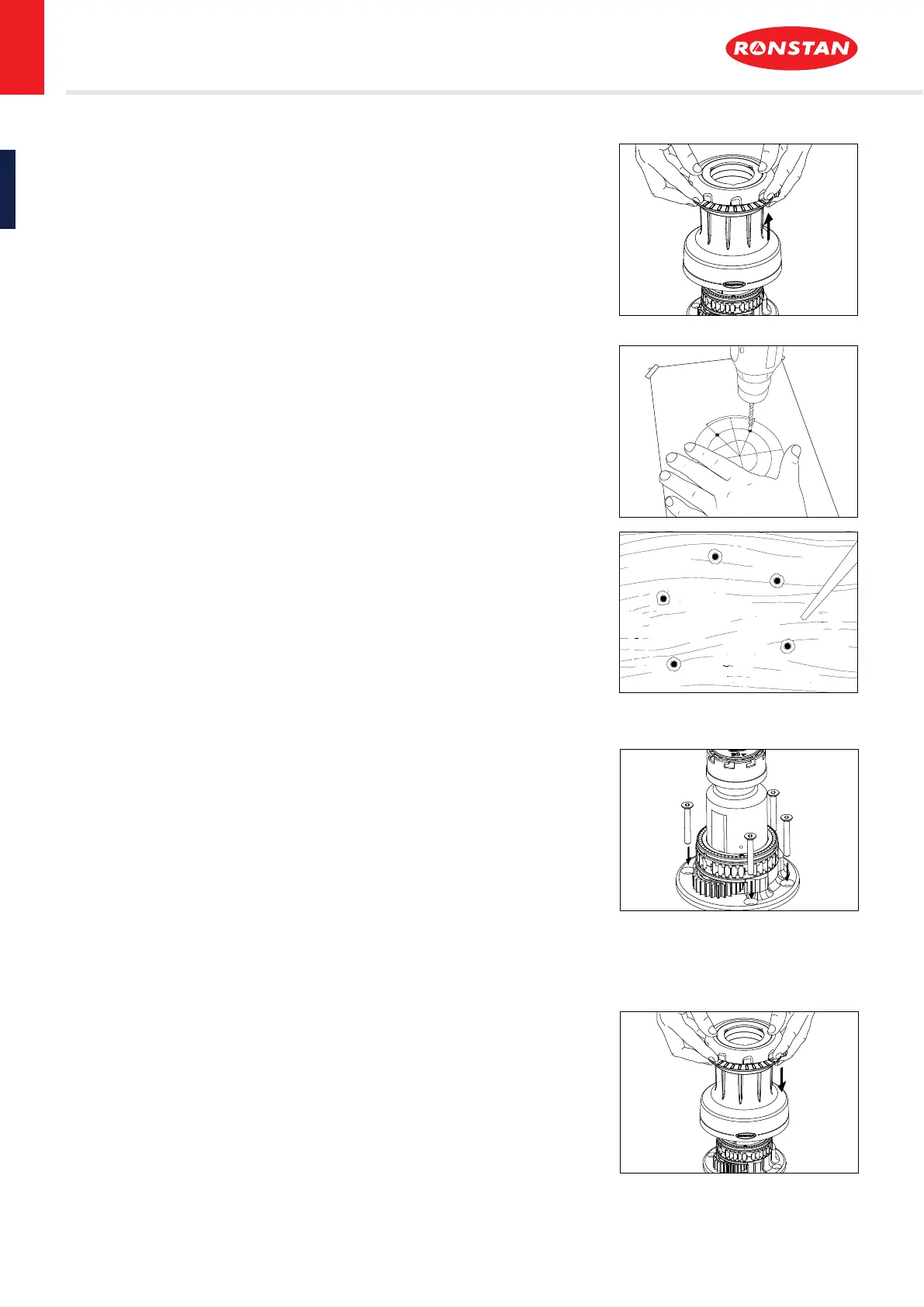 Fit the centre stem [18] to the deck using large washers (or backing plate) and locking nuts below deck. Apply