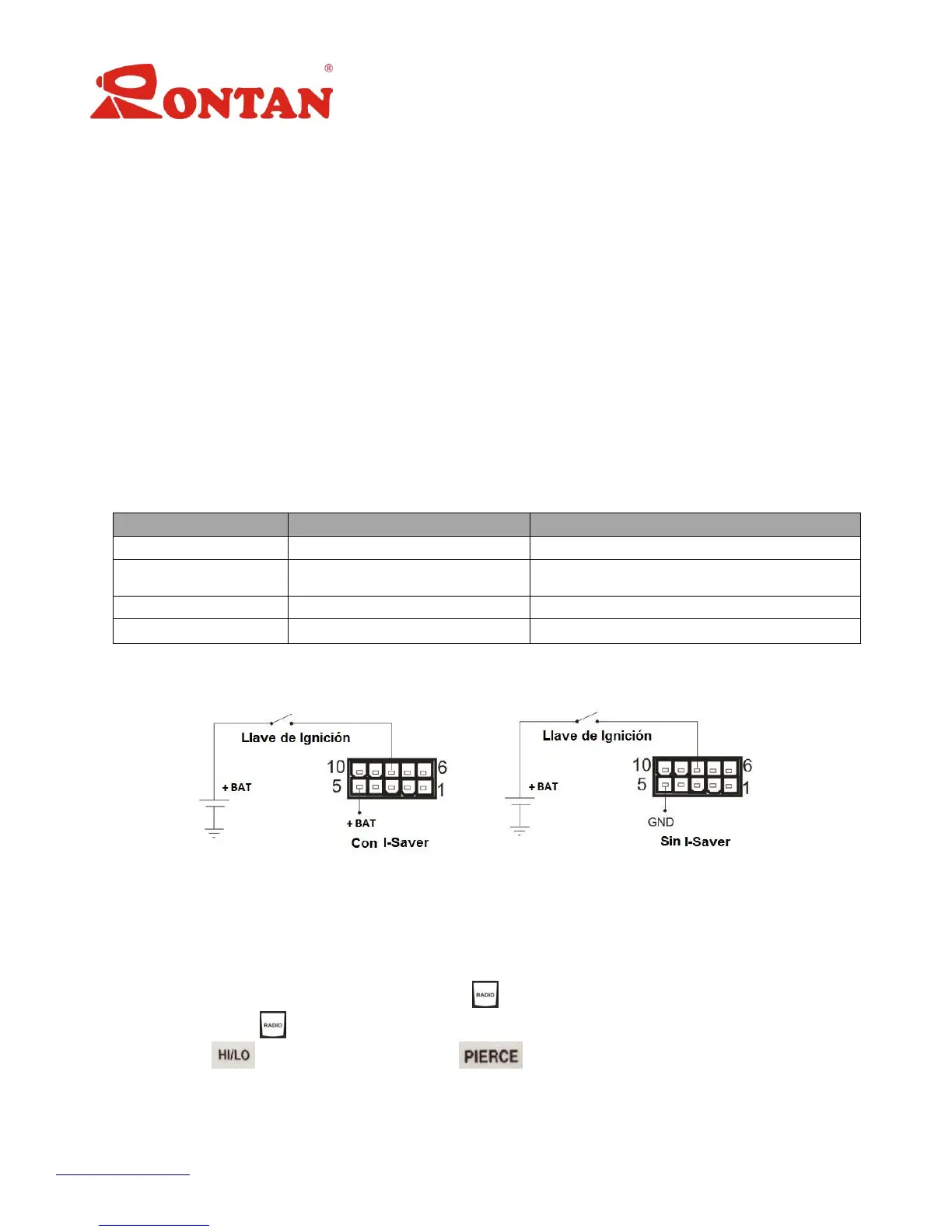 Table 5: INPUT IGNICIÓN AND I-SAVER