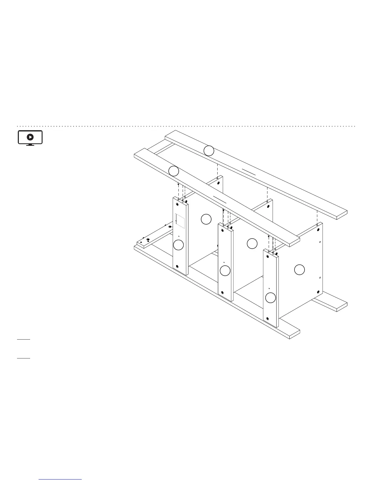 Fasten the SHELVES (B2, C2, and D2) and BACKS (E2) to the LEGS (G and I). Tighten nine HIDDEN CAMS.