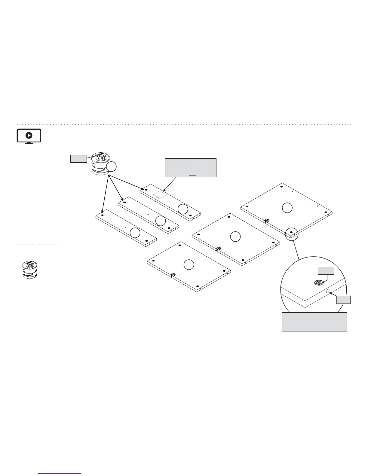 Push eighteen HIDDEN CAMS (1F) into the SHELVES (B2, C2, and D2) and BACKS (E2).
