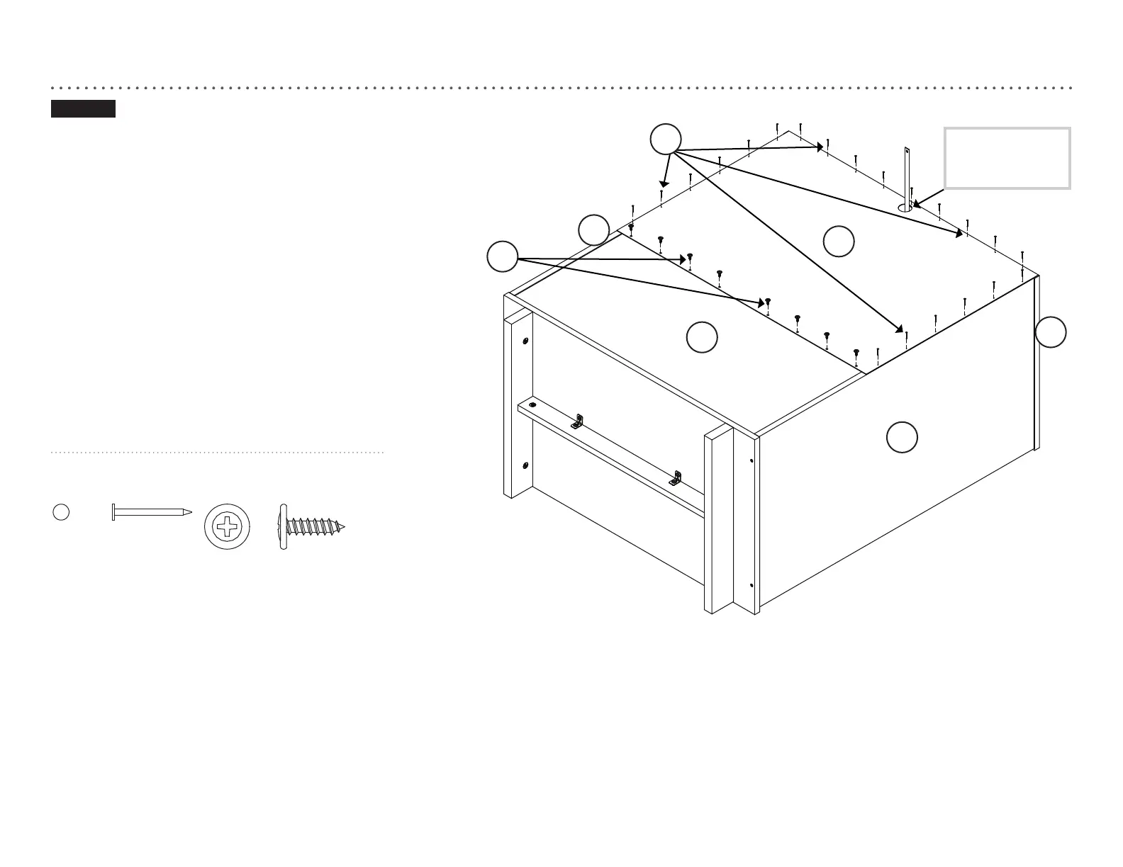 Fasten the UPPER BACK (L) to the ENDS (A and B) and TOP (C) using the NAILS (1N).