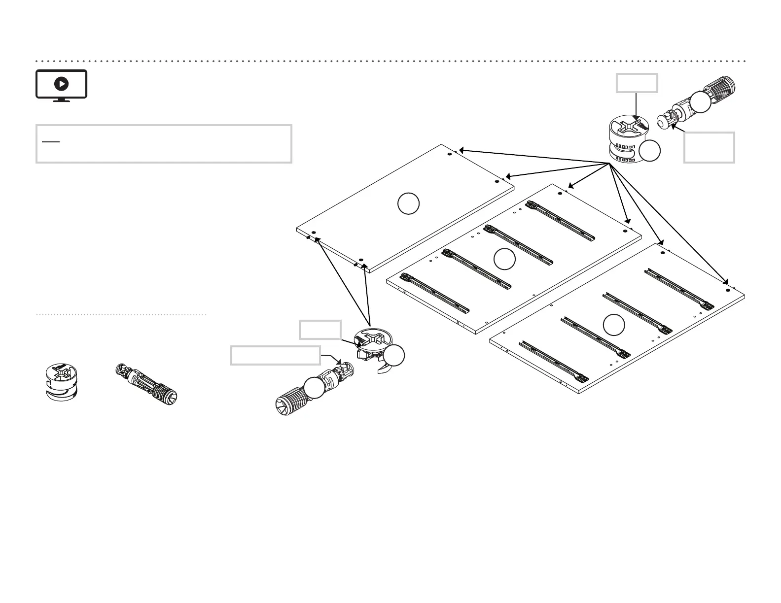 metal de un PASADOR DE MONTAJE DE ROSCA DE SUJECIÓN (2F) en cada ROSCA DE SUJECIÓN OCULTA.