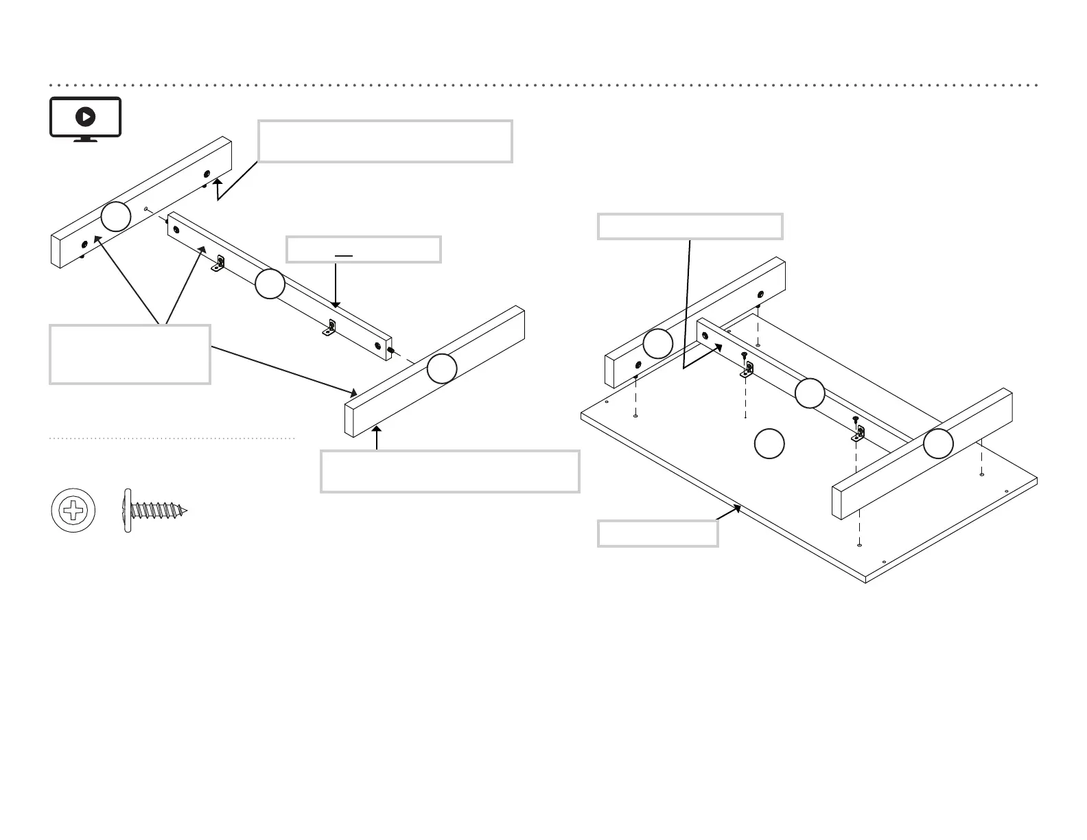 Sujete los SOPORTES de la FALDA (G) al FONDO (E). Utilice dos TORNILLOS NEGROS DE CABEZA GRANDE DE 9/16" (1S).