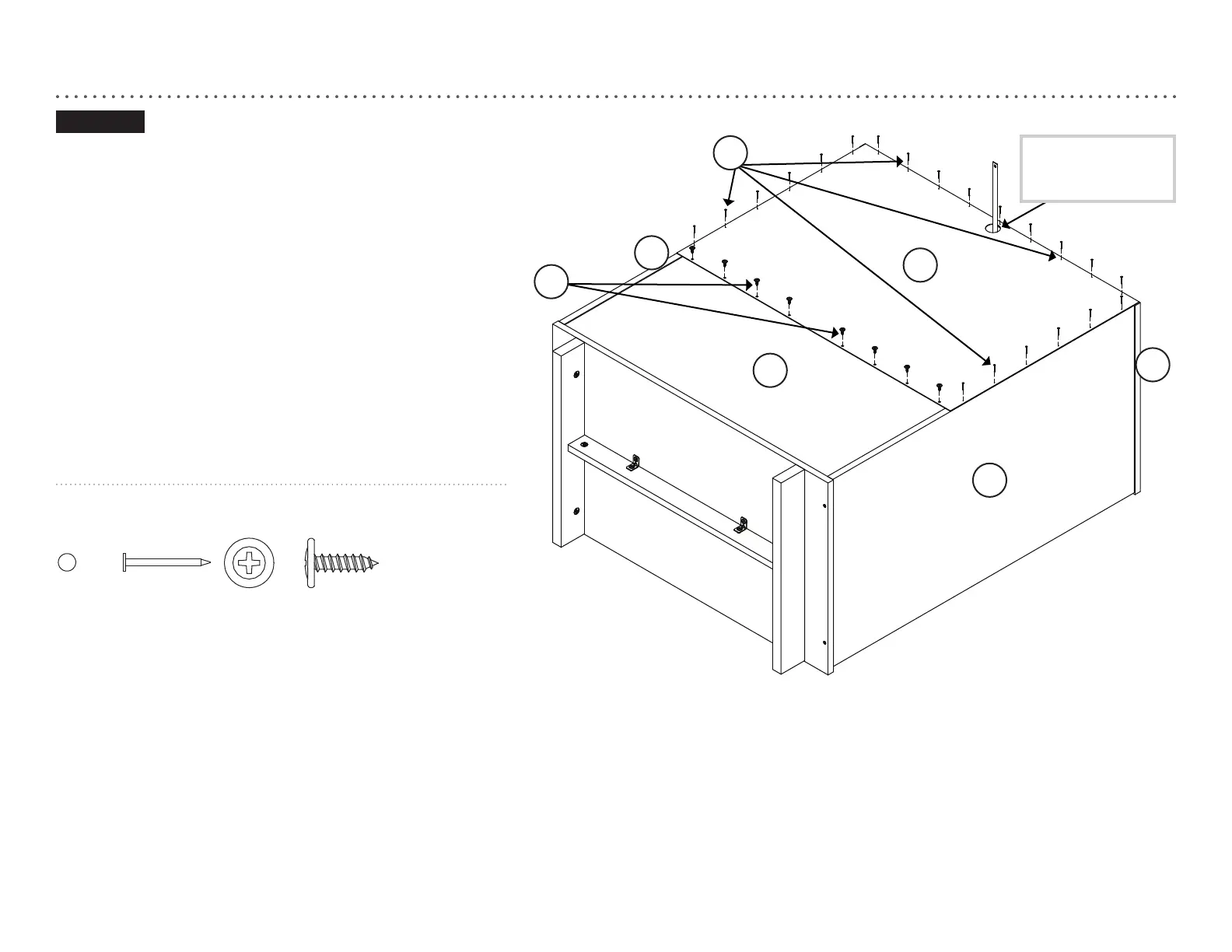 Sujete la PARTE TRASERA SUPERIOR (L) a los EXTREMOS (A y B) y la PARTE SUPERIOR (C) con los CLAVOS (1N).
