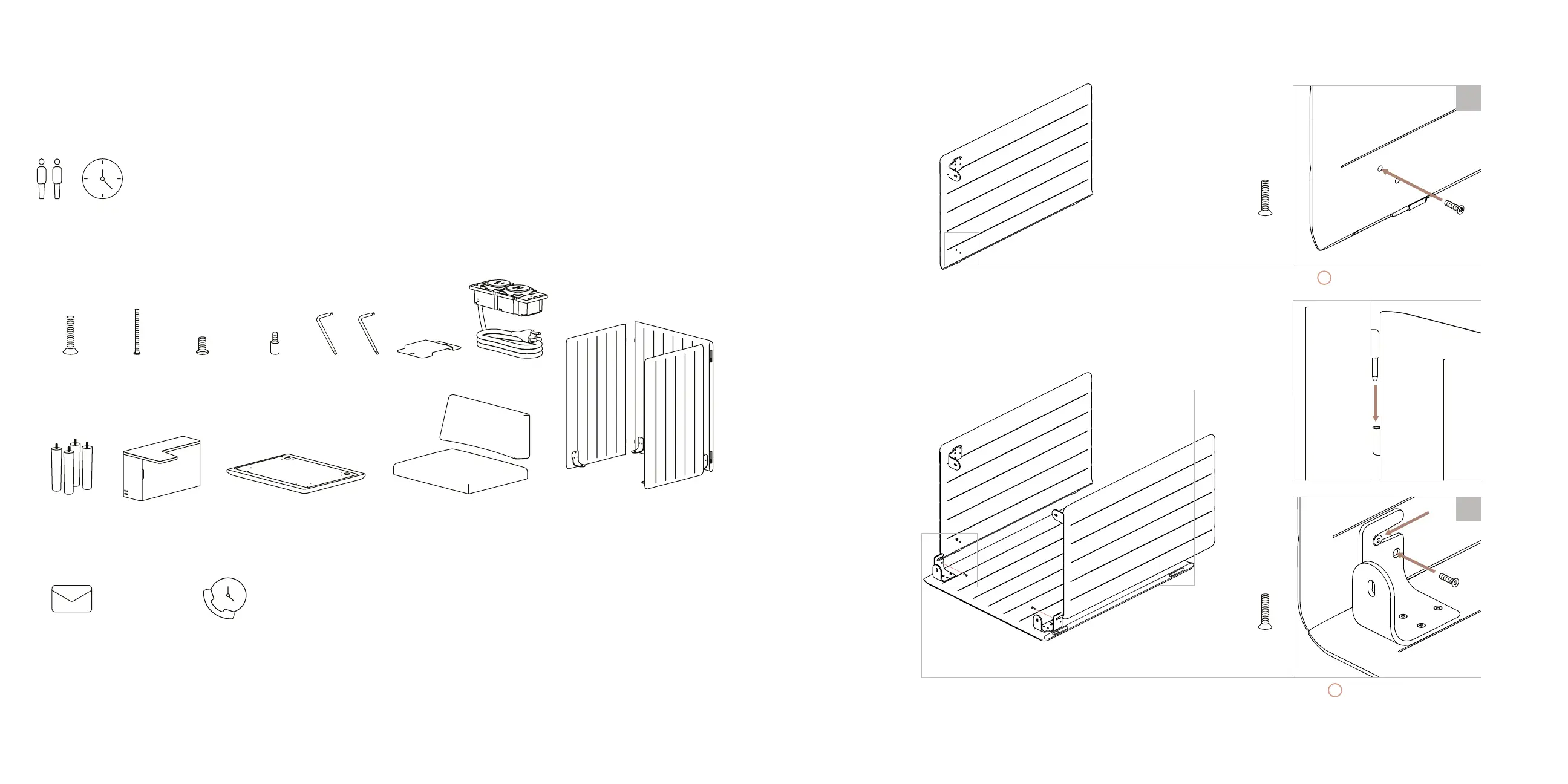 Cushions Acoustic panelsPlatform baseCabinet + Desk