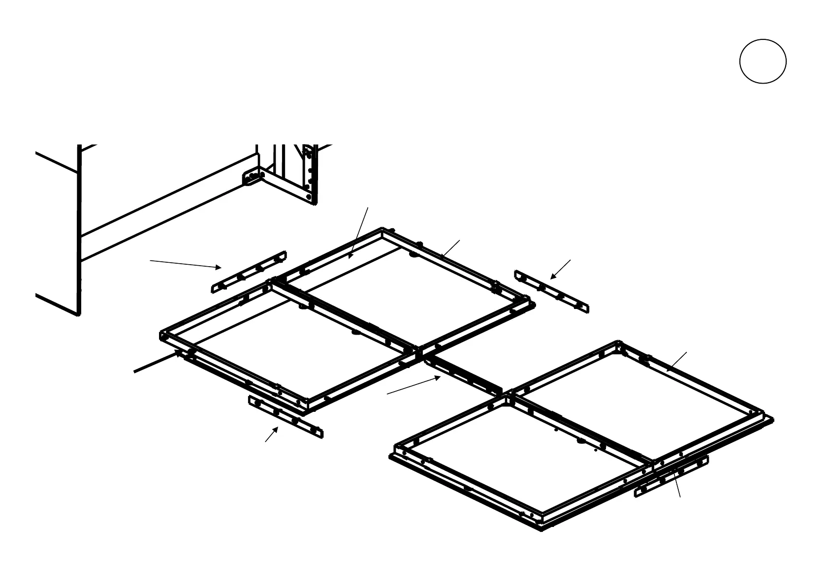 Open boxes #3 and #4 and lay out the contents as shown below with the wood face of the bed tray face-down on the carpet/blankets/etc., that will protect it.
