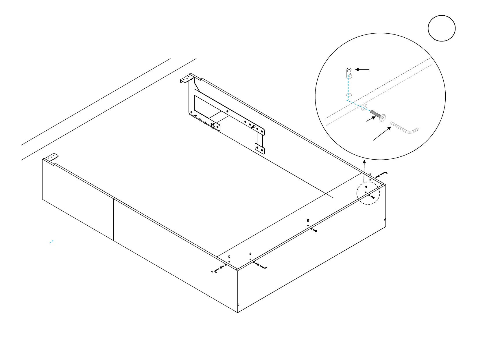 Step 2: Position the top-back panel and connect with K110 bolts and K111 barrel nuts as shown.