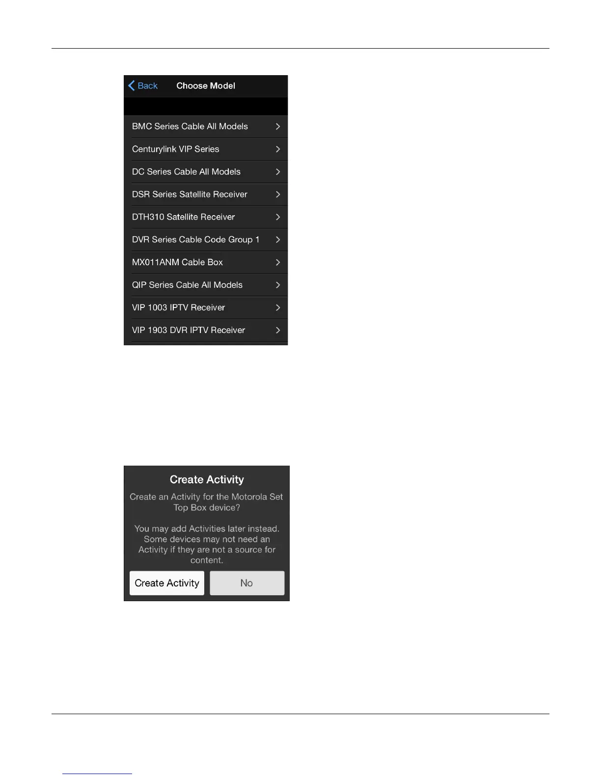 21. Tap the appropriate Set Top Box model.