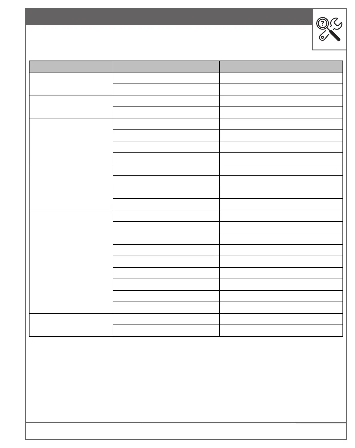 TROUBLESHOOTING CHART