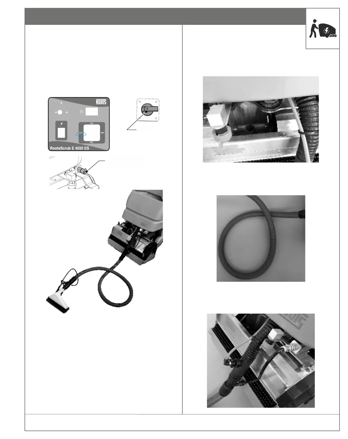 Ú In this mode water will be sprayed inside the suction hose
