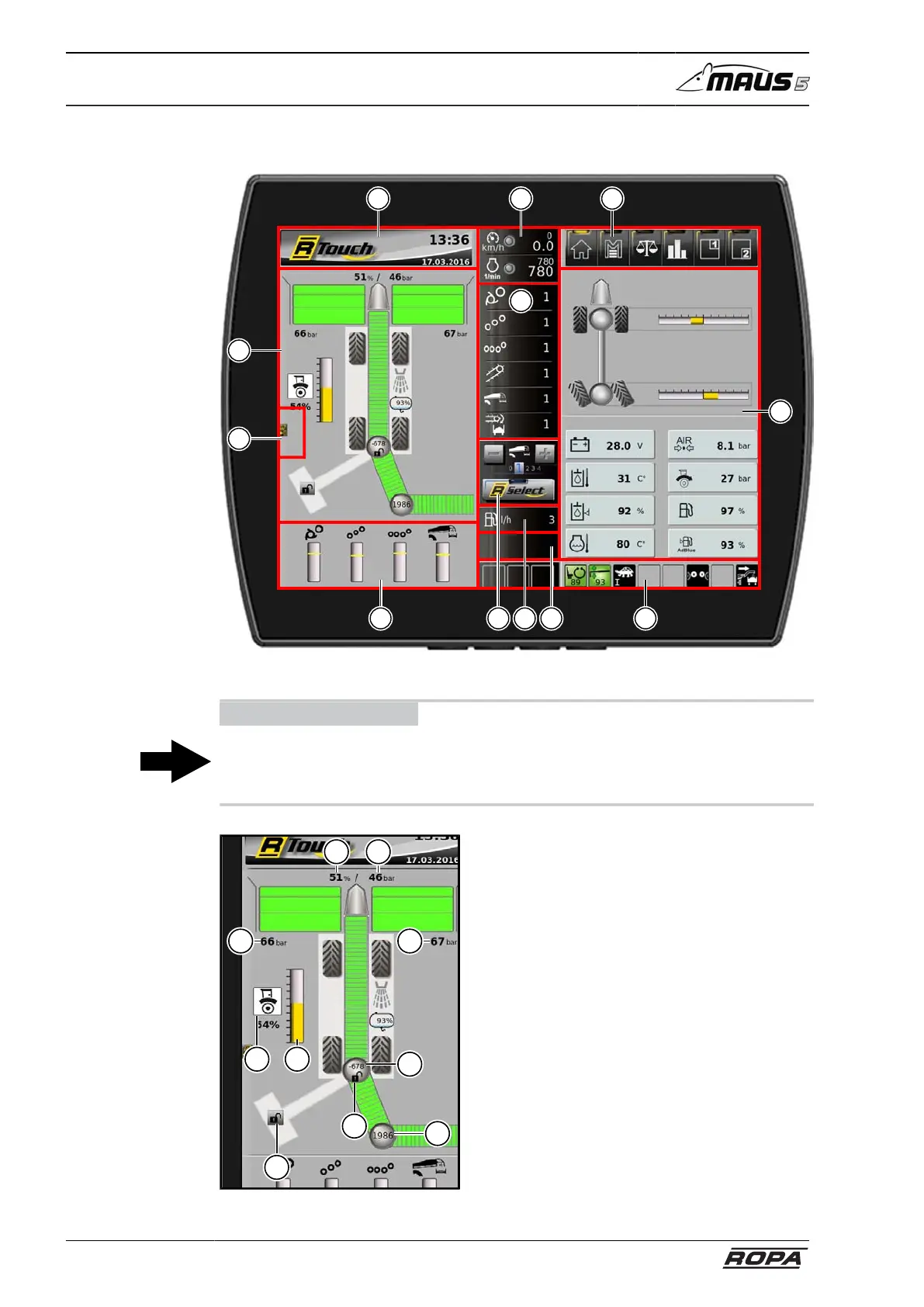 6.3.1.1 Display areas on the R-Touch
